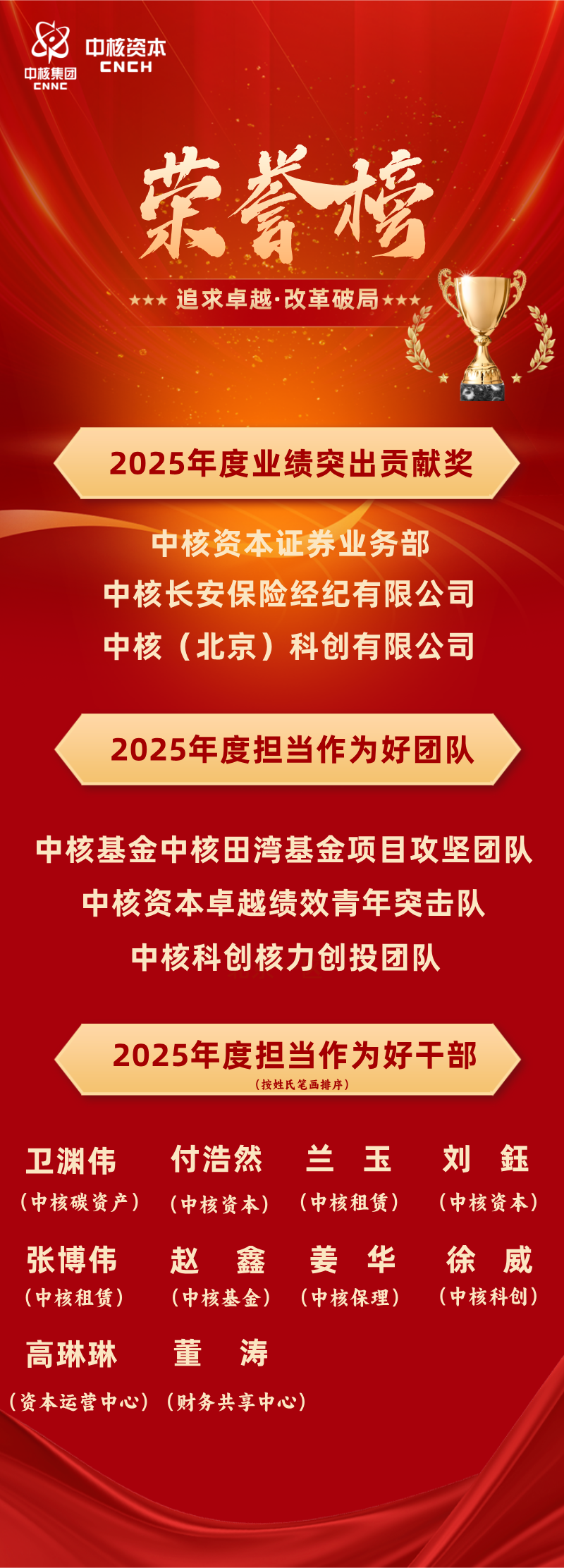 张越在讲话中充分肯定了中核资本2025年取得的成绩。同时强调,2026年是“十五五”规划开局之年,也是集团公司“追求卓越·改革破局”年,中核资本要紧密围绕集团公司改革发展重点任务,“练内功、有韧劲、善破局”,坚定信心、乘势而上,在服务重大战略落地、防范化解金融风险、深化全面从严治党中展现新担当、实现新作为。