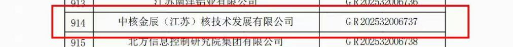 近日,全国高新技术企业认定管理工作领导小组办公室公布《江苏省认定机构2025年认定报备的第二批高新技术企业备案名单》,中核凯利所属中核金辰成功入选。