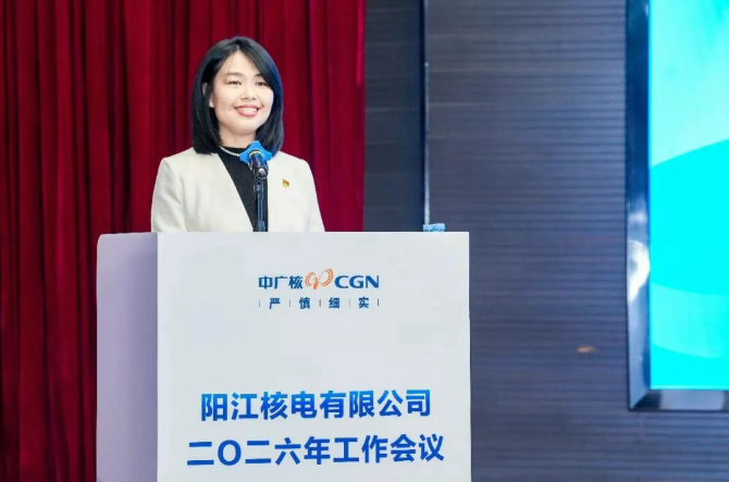 1月27日,阳江核电2026年工作会议在阳江核电基地海滨多功能厅召开。中国广核电力股份有限公司(以下简称“核电股份公司”)副总裁秦余新、华南核与辐射安全监督站(以下简称“华南监督站”)纪检组组长宁安出席会议并讲话。阳江核电党委书记、董事长赵福明作年度工作报告,阳江核电党委副书记、总经理杨剑兵主持会议。
