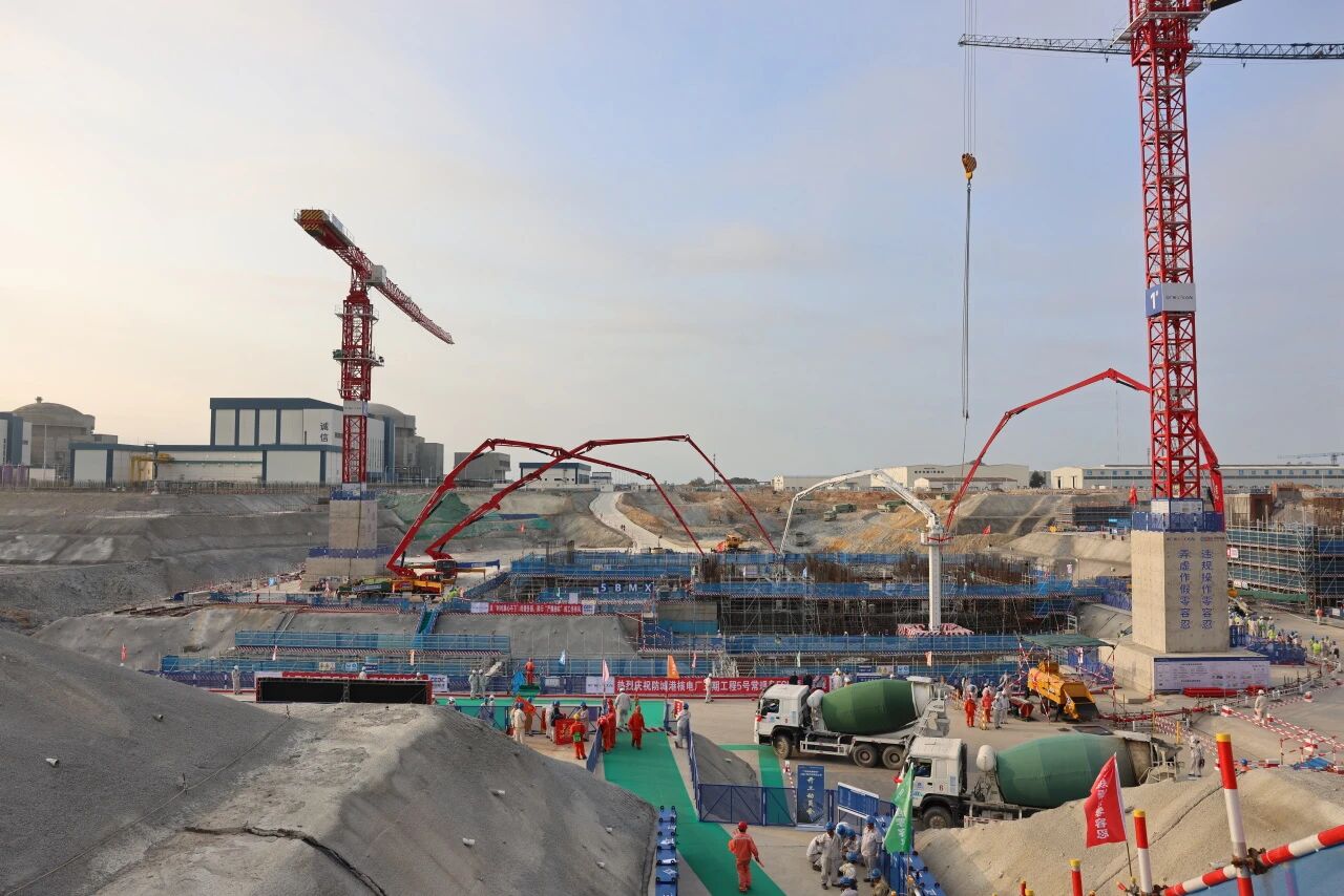 1月31日,防城港核电5号机组常规岛汽机筏基浇筑第一罐混凝土(FCD),经69小时施工作业,于2月3日06时58分完成,共浇筑混凝土4662立方米,标志着常规岛主体工程全面进入施工阶段。