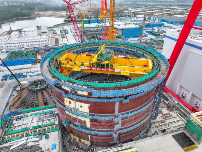 2月5日17时21分,国家电投广东廉江核电1号机组环吊整体吊装就位,为后续钢制安全壳顶封头就位奠定了坚实基础。