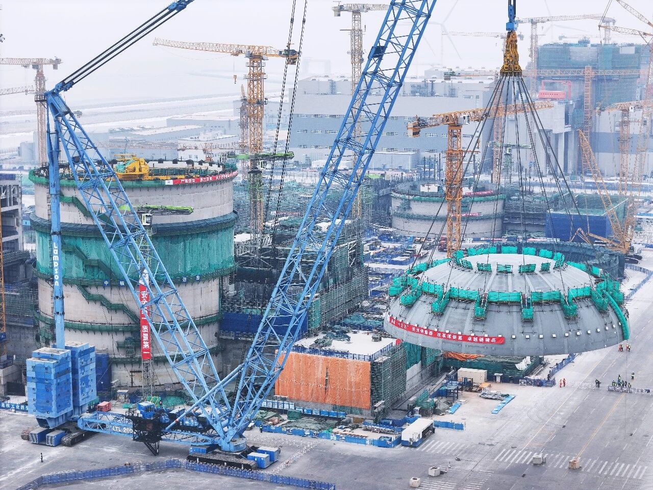 2月10日,北方小年当天,中核集团旗下中国核电投资控股的辽宁徐大堡核电1号机组核岛钢制安全壳顶封头顺利吊装就位,标志着该机组建设从土建施工全面转入安装阶段。