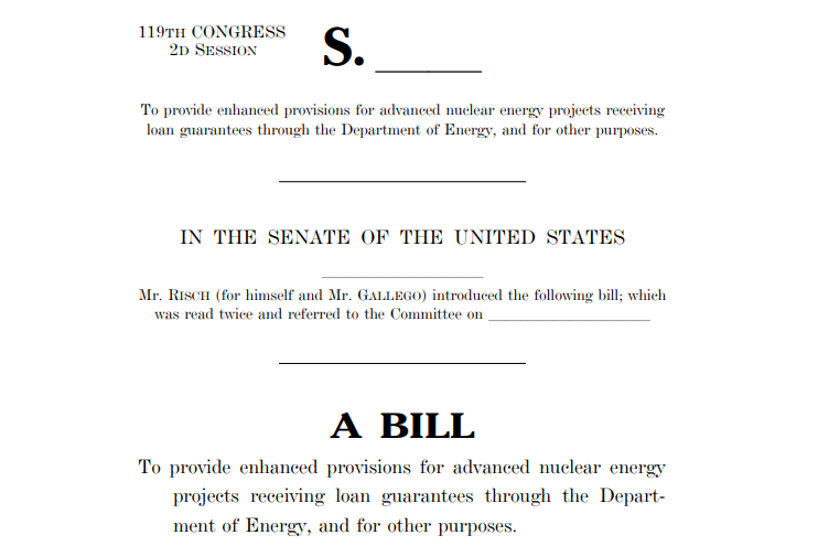 2月10日,美国共和党参议员吉姆·里施(Jim Risch)(爱达荷州)与民主党参议员鲁本·加列戈(Ruben Gallego)(亚利桑那州)向参议院重新提出了《加速可靠容量法案》 (Accelerating Reliable Capacity Act)。