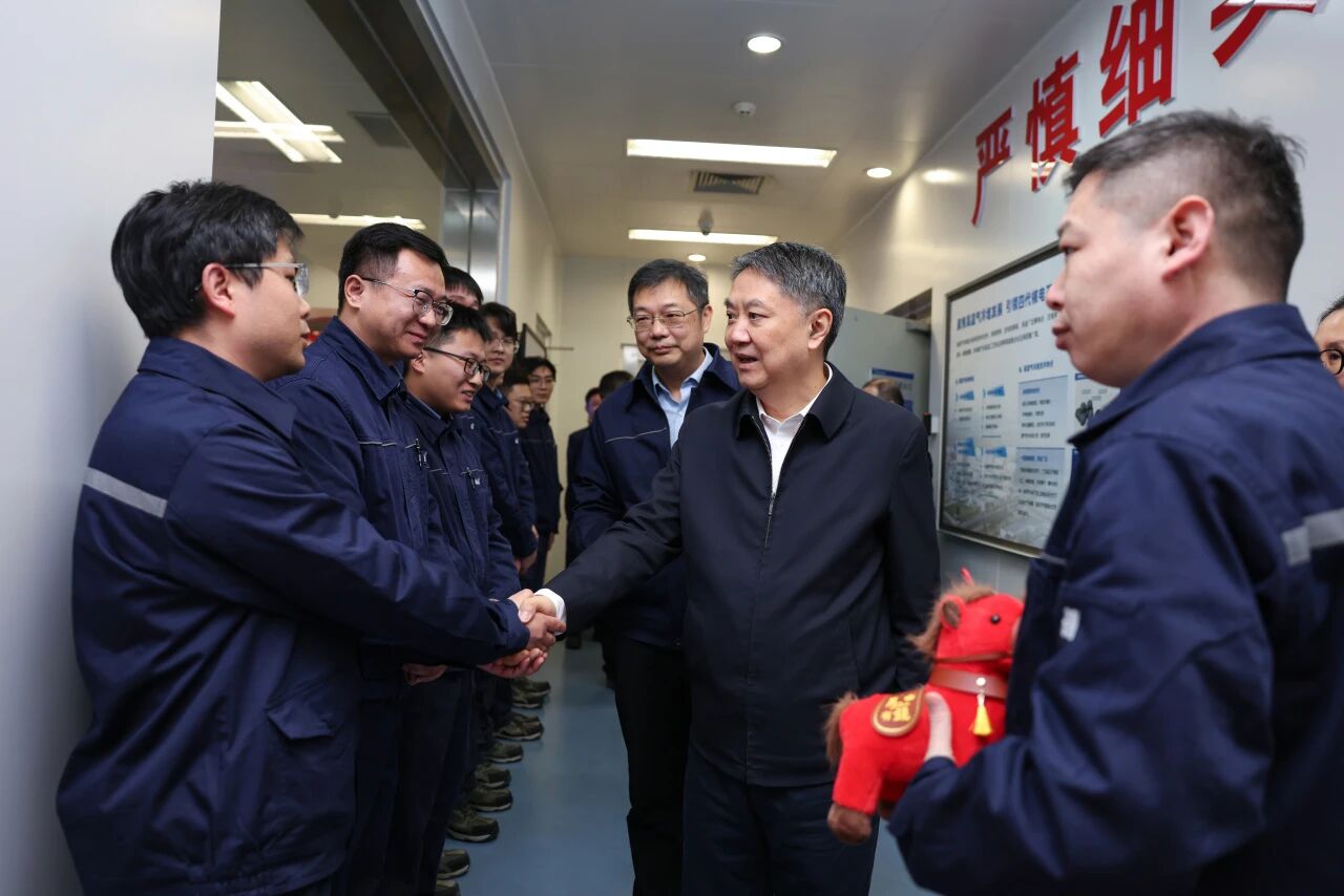 新春佳节来临之际,集团公司董事长、党组书记温枢刚一行深入石岛湾公司,看望慰问一线干部职工,实地调研了解生产运行、项目建设等情况,并向大家致以诚挚问候和新春祝福。