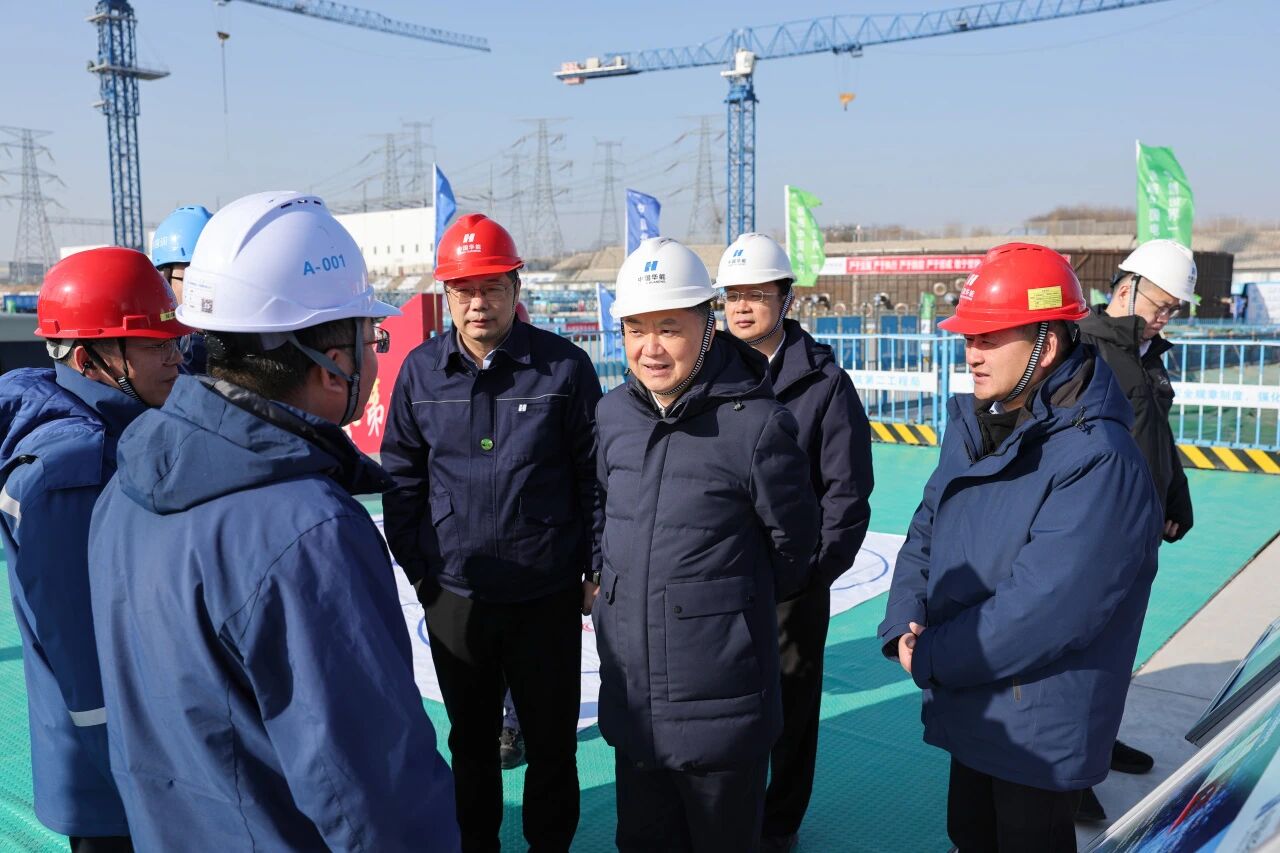 在扩建工程现场,温枢刚实地查看项目建设进展和智慧工地系统运行情况,听取现场安全质量管控、施工组织安排等情况介绍。他与一线建设者面对面交流,询问大家的工作生活情况,鼓励大家在新的一年里继续攻坚克难、再创佳绩,并提前给大家拜年。