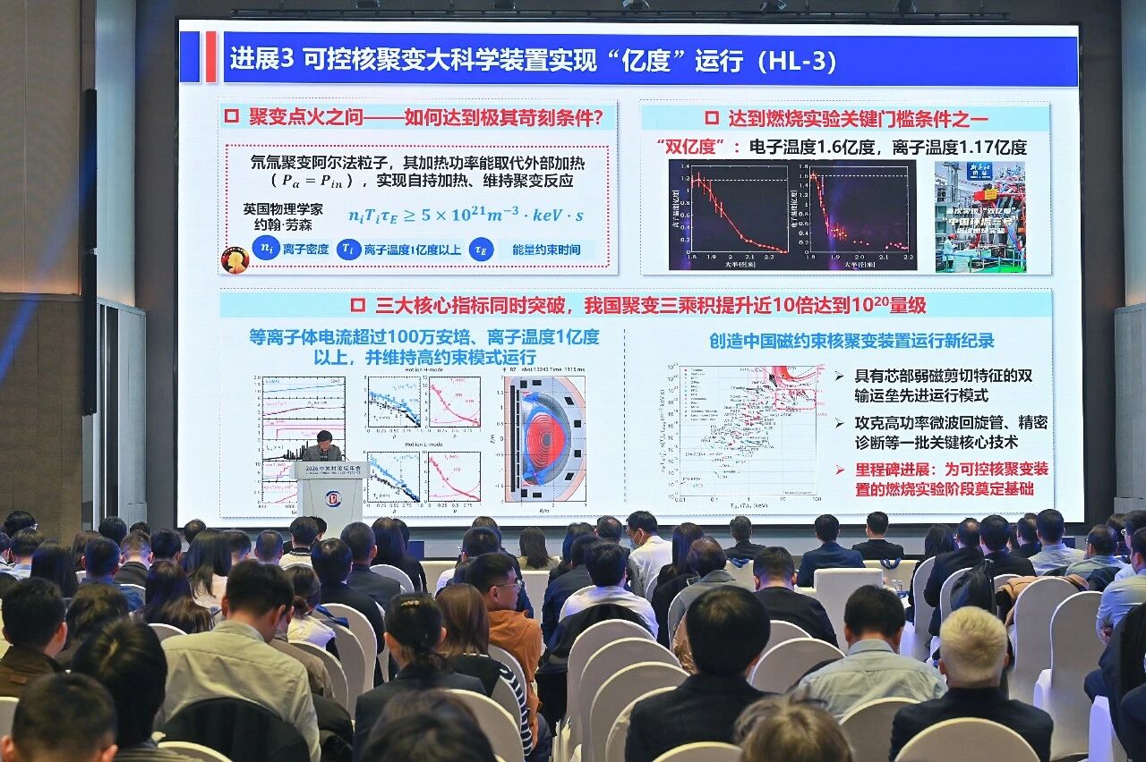 中核集团新一代人造太阳“中国环流三号”是我国在运规模最大、参数最高的先进托卡马克装置。在当日下午举行的“中国科学十大进展”专家解读会上,中国科学院院士王秋良介绍,近年来,“中国环流三号”连续创造新纪录,2025年实现离子温度1.2亿度、电子温度1.6亿度的“双亿度”运行,聚变三乘积达到10的20次方量级,使我国磁约束聚变科学研究达到国际领先水平,标志着中国聚变快速挺进燃烧实验,为未来建造实验堆奠定了坚实的科学与工程技术基础。国家自然科学基金委员会党组成员,副主任兰玉杰为进展完成团队代表颁发纪念牌。