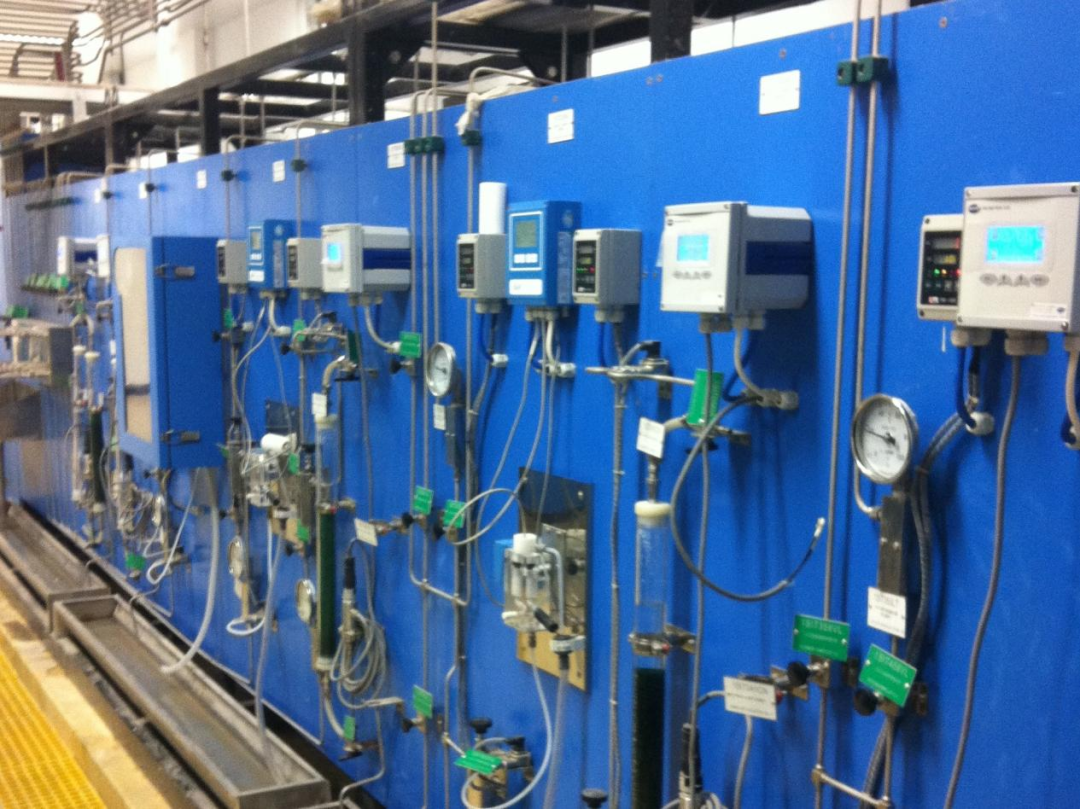 这些高温高压的样品,会先后经过一级、二级冷却器“降温降压”,安全送入在线分析仪表盘进行检测。它能精准测出pH值、溶解氧、钠含量等多项关键指标,就像为汽水系统做了一次全面的“血常规检查”,实时掌握水质状况。