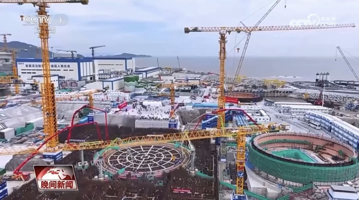 中广核浙江三澳核电规划建设6台“华龙一号”核电机组,目前已开工3台。项目全部建成后,年发电能力预计超540亿千瓦时,接近温州市当前全社会用电总量,可满足超500万人口的年度生产生活用电需求,每年可减少标煤消耗超1635万吨,降低二氧化碳排放约5000万吨,相当于新增植树造林面积超12万公顷。