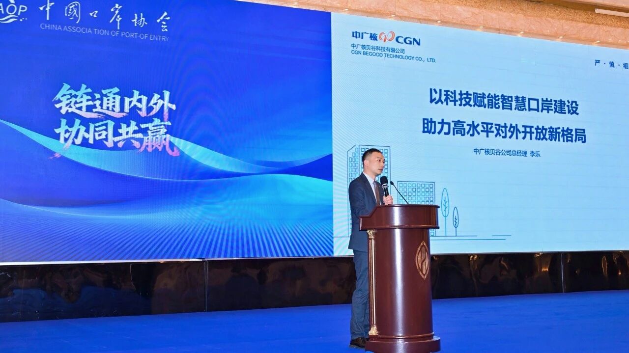 大会主题演讲环节,中广核贝谷科技有限公司总经理李乐以《以科技赋能智慧口岸建设 助力高水平对外开放新格局》为题,结合《关于智慧口岸建设的指导意见》“五化”要求,分享了中广核贝谷在智慧口岸建设领域的探索实践与技术实力。他介绍,2026年是“十五五”规划开局之年,智慧口岸建设正迈入系统深化、全面赋能的新阶段,中广核贝谷立足“核技术+智慧口岸”融合创新理念,打造“硬件+软件+系统集成”全链条服务体系,重点深耕智慧监管、智能查验等领域。
