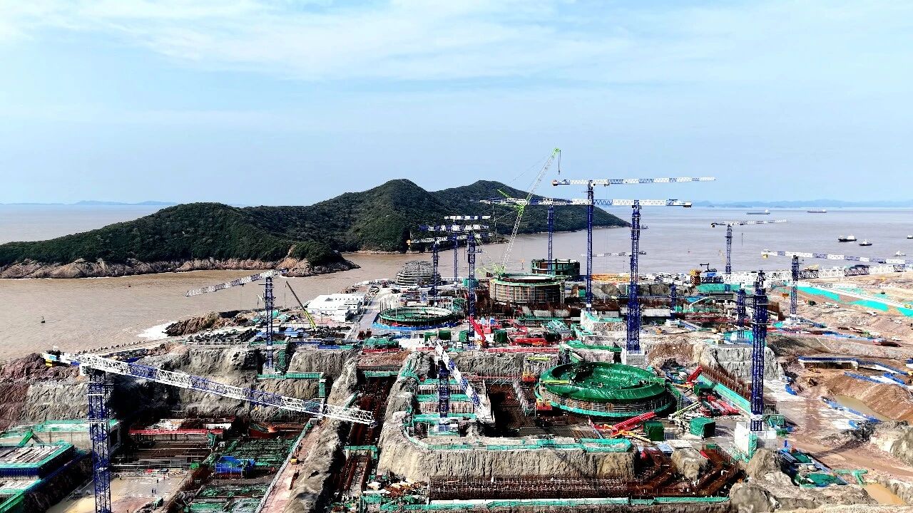 目前,金七门核电一期工程2台机组均已进入建设阶段,在中核集团打造具有全球竞争力的世界一流集团战略目标引领下,中核浙能与中核工程、中核咨询、中核二二,中核五公司、中核华辰等各参建单位通力协作,合力创新设计建造一体化工程建设组织模式,聚力推进“标准化设计、工厂化预制、模块化施工、智能化制造、数字化交付”精益建造管理模式,全力建设“安全、科技、经济、数字、廉洁”新质华龙示范工程,计划分别于2030年、2031年投产发电。项目整体规划建设6台百万千瓦级压水堆“华龙一号”核电机组,建成后年发电量达到550亿千瓦时,可减少二氧化碳排放约4500万吨,相当于植树造林65个宁波东钱湖的面积,将为浙江省和长三角地区能源电力保供和绿色低碳转型提供有力支撑。