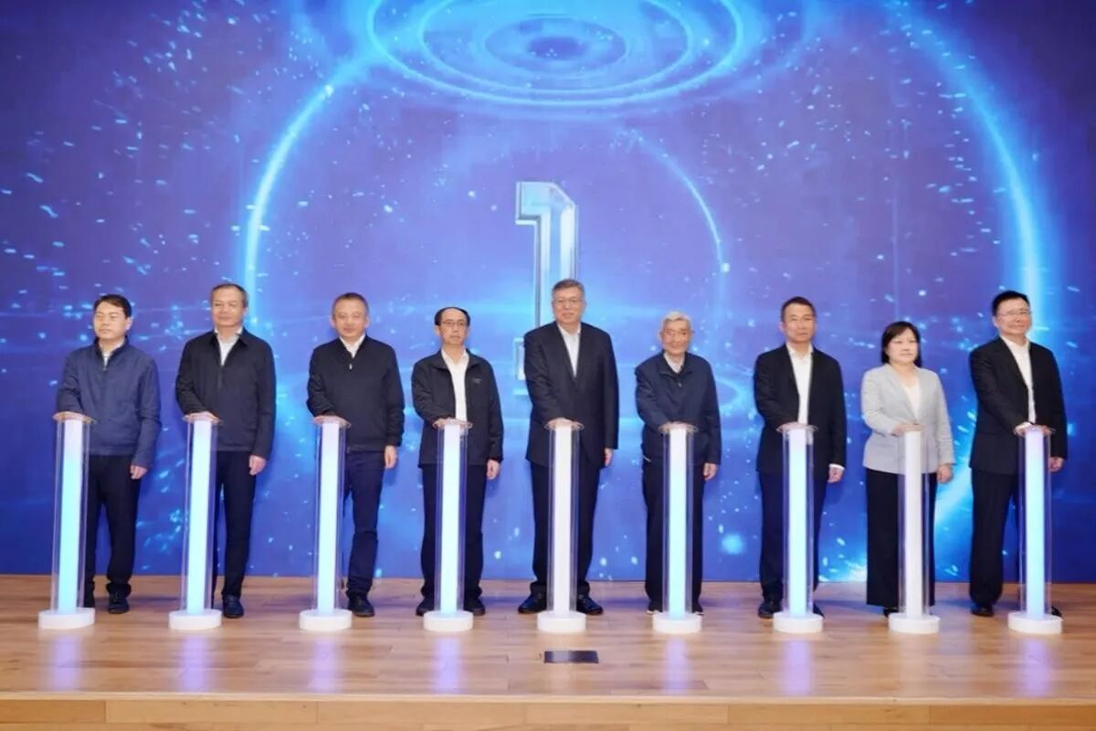 尤政、潘垣、吴宜灿、夏松、孟晖、余松、聚变研究中心主任杨勇共同为研究中心揭牌。