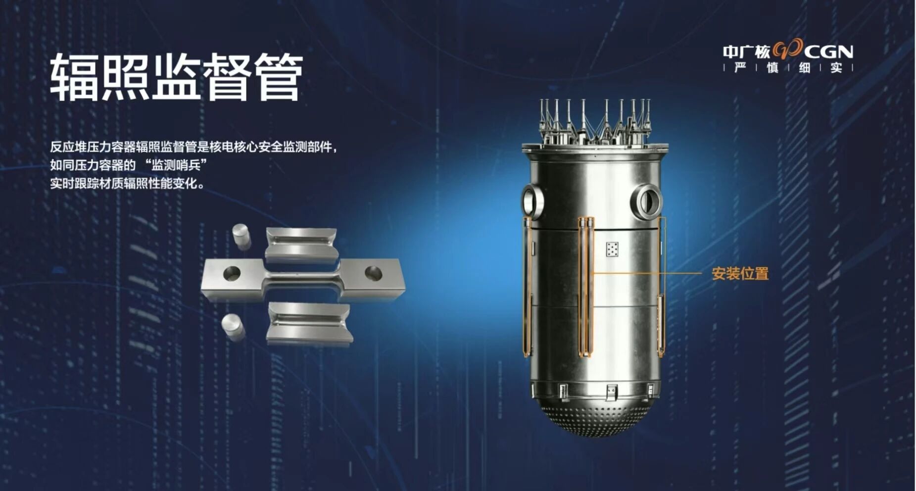 “和道昇盾”聚焦国产化替代,创新发布反应堆压力容器辐照监督管,相当于压力容器的“监测哨兵”,可实时跟踪材料受辐照后的性能变化,为安全运行和寿命评估提供关键数据。经中国核能行业协会鉴定,性能达到国外同类产品先进水平,打破国外产品长期垄断。国产化后成本下降约30%,采用真空电子束焊接及双介质密封验证提升工艺可靠性,保障了核电关键装备供应链安全。