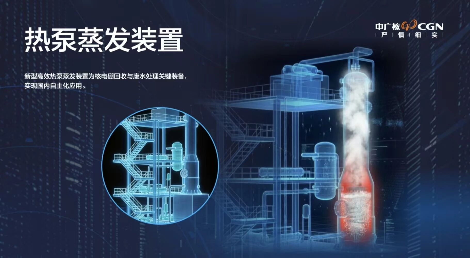 “和道昇安”针对行业痛点打造的新型高效热泵蒸发装置,可用于放射性废液处理,是国内核电厂首次自主应用热泵蒸发技术。相比传统蒸发技术,可降低近85%的能耗,去污因子明显提升,且采用模块化设计,占地小、工期短。经鉴定,主要性能达到国际先进水平,将废液处理从高耗能环节转变为节能环节,助力核电绿色低碳发展。
