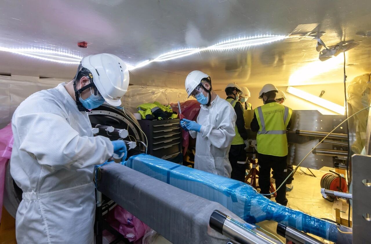 ITER托卡马克大楼大厅内,随着最后一组超导母线接头完成绝缘处理,馈线系统第一阶段装配任务正式收官。这一阶段的核心工作的是完成廊道内馈线线路部件对接,经过中方专业团队的精准操作,50个超导母线接头全部顺利完工,为后续工作奠定了坚实基础。