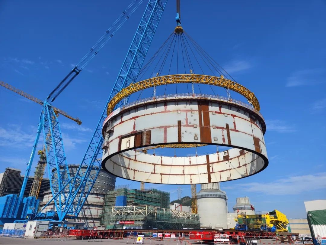 7月21日10时20分,三门核电3号机组核岛屏蔽厂房墙体钢板混凝土结构(SC)第8-10层模块在历时2小时30分后,顺利吊装就位,为3号机组安全壳顶封头就位里程碑节点实现打下了坚实的基础。