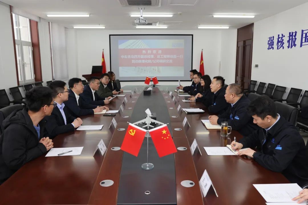 为加快发展新质生产力,加速与产业链上下游企业协同创效,近日,中车四方机车车辆股份有限公司副总经理、总工程师徐磊一行到核理化院/公司开展产业合作交流。院/公司副院长、副总经理韩若昊参加交流。