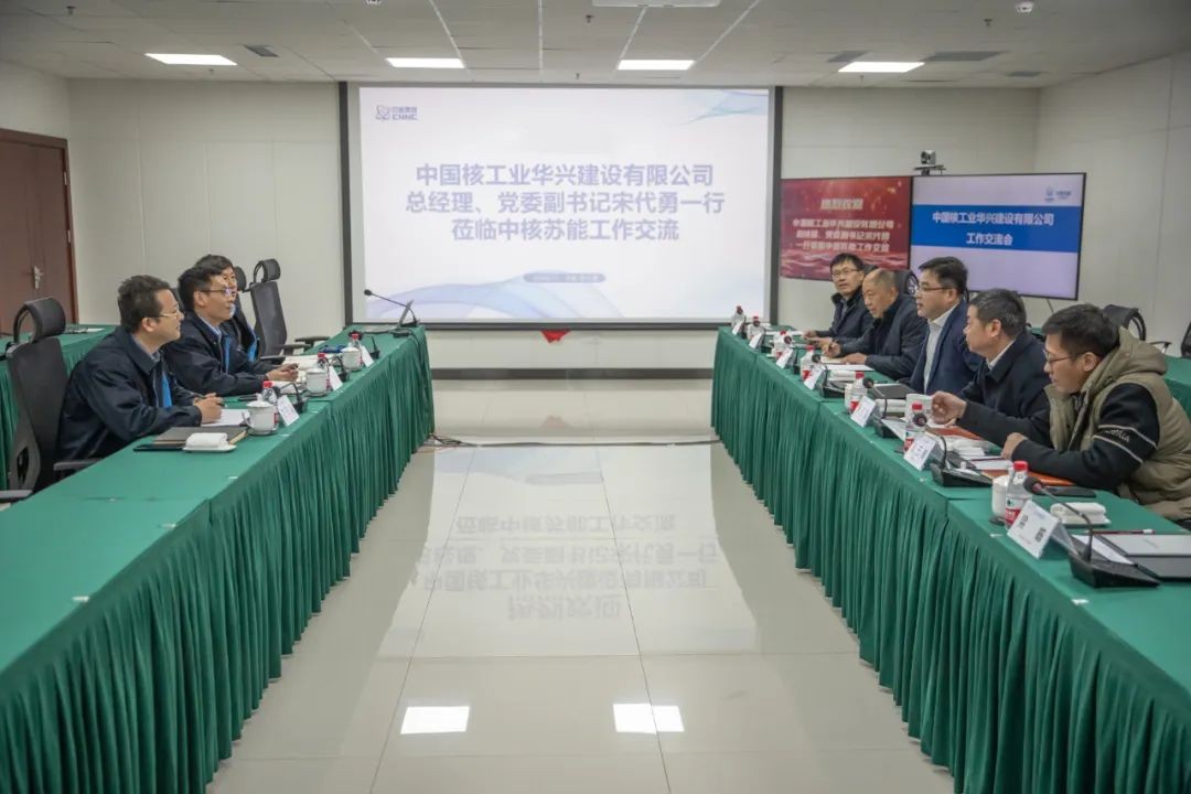 1月12日,中核华兴总经理、党委副书记宋代勇拜访中核苏能董事长、党委书记崔方水并开展工作交流。
