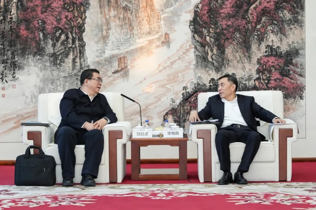 12月19日,中国能建党委书记、董事长宋海良在公司总部与安徽亳州市委书记杜延安会谈。双方就进一步深化务实有效合作,共同推动绿色低碳产业发展进行深入交流。