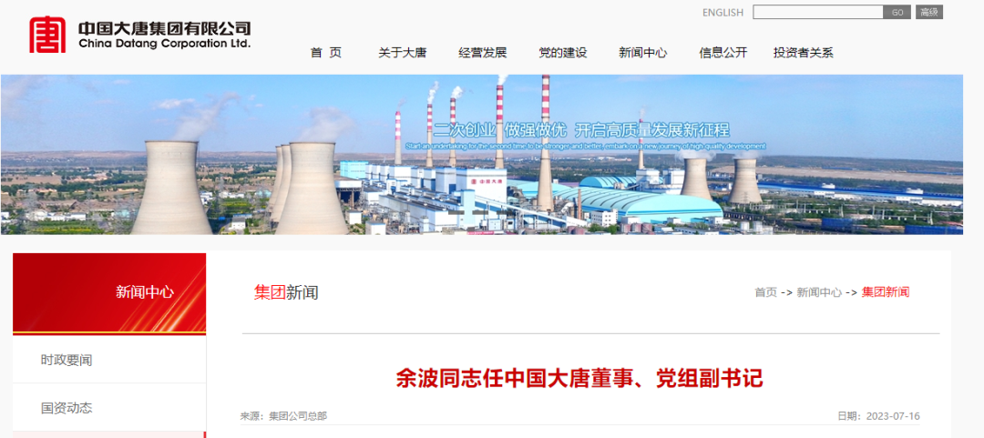 7月16日上午,中国大唐集团有限公司召开领导班子扩大会议,通报了中央关于余波同志任中国大唐集团有限公司董事、党组副书记的决定。上述任职按有关法律规定办理。