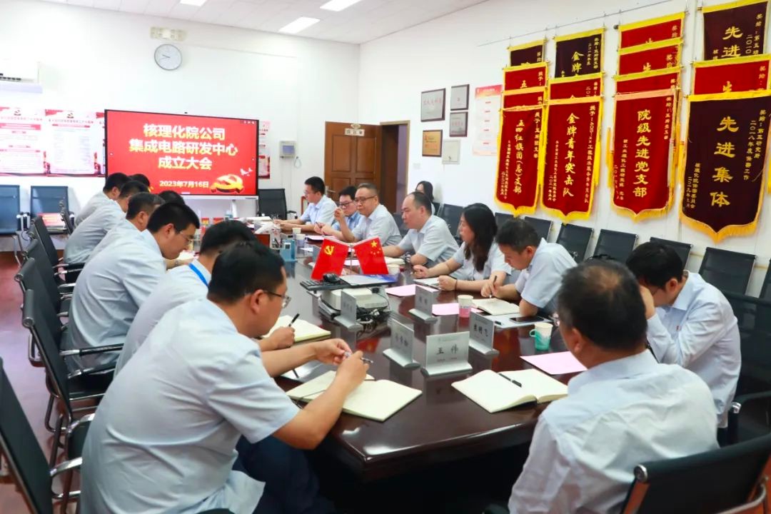 7月16日,核理化公司召开集成电路研发中心成立暨任职宣布大会。公司党委书记、执行董事鄢斌,党委副书记、总经理姜宏民,副总经理魏恒参加会议。