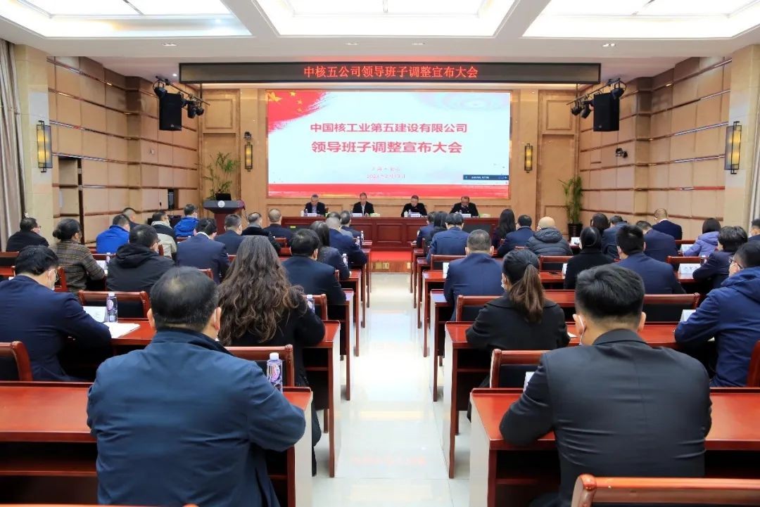 2月13日上午,中核五公司召开领导班子调整宣布大会。中国核建董事、党委副书记张卫兵,中国核建人力资源部(组织部)副总经理(主持工作)胡登新等同志参加会议,中核五公司党委书记、董事长赵晨曦主持会议。