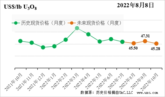 2022年8月8日,中国核能行业协会发布第21期“CNEA国际天然铀价格预测指数(2022年8月)”。