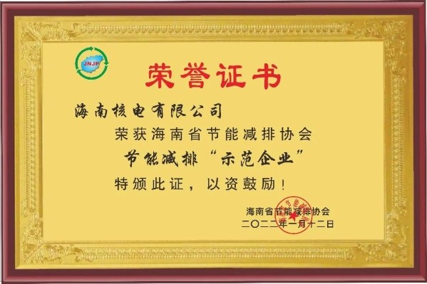 近日,海南省节能减排协会在海口召开年终工作总结大会,海南核电被授予节能减排“示范企业”称号。
