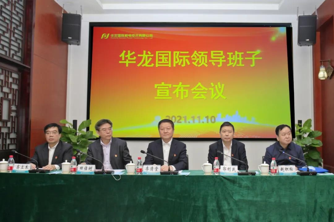 2021年11月10日上午, 华龙国际领导班子宣布会议在京召开。中核集团党组副书记、董事李清堂,中国广核集团党委常委、副总经理郭利民出席会议并讲话。中核集团人力资源部书记、副主任赵积柱,中国广核集团人力资源部负责人章国强出席会议,华龙国际董事长、党委副书记杨茂春主持会议。_