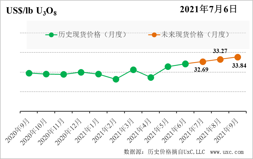 2021年7月8日,中国核能行业协会发布第8期“CNEA国际天然铀价格预测指数(2021年7月)”。