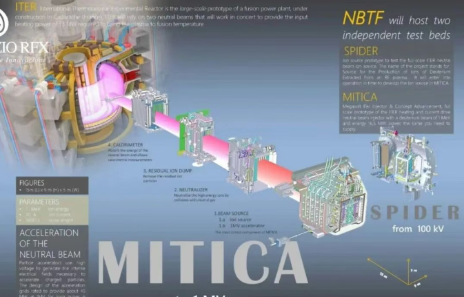 2025年11月12日,世界上最大的低温泵——MITICA低温泵已成功冷却至标称工作温度(nominal operating temperatures),证明了MITICA低温基础设施的可靠性,标志着聚变研究和中性束测试设施已达成重要的里程碑。MITICA(全功率注入器)是ITER中性束注入(NBI)系统的1:1全尺寸原型机,其设计目标是从氢和氘的负离子开始,产生一股中性粒子束,将其加速至1MeV的能量,并以16.5MW的功率持续运行一小时。MITICA旨在验证ITER中性束注入系统的工程可行性,并测试.