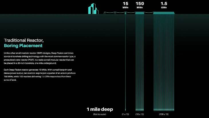总部位于加州的核能初创公司Deep Fission于2024年8月宣布正式退出隐身模式,其目标是将小型模块化反应堆(SMR)放置在地下一英里深的钻孔中。该公司计划在地下约1英里(1.6公里)处一个30英寸(约76厘米)的钻孔中建造15兆瓦(MWe)的压水反应堆,热量传输到地下深处的蒸汽发生器使水沸腾,非放射性蒸汽上升到地面后由标准蒸汽轮机转化为电能。该公司表示,其反应堆功率可从15兆瓦扩展至1.5吉瓦(GWe)。报告指出,将反应堆置于地下可利用周围地质条件...