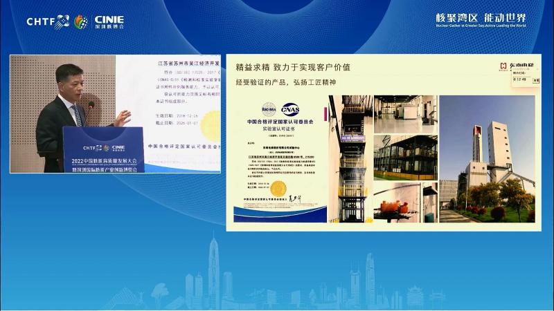 本视频为东南电梯股份有限公司董事长秦健聪,在中国核能高质量发展大会暨深圳核电产业博览会(深圳核博会),核电先进建造技术论坛上发表题为《东南电梯助力核电产业高质量发展》的演说录像。