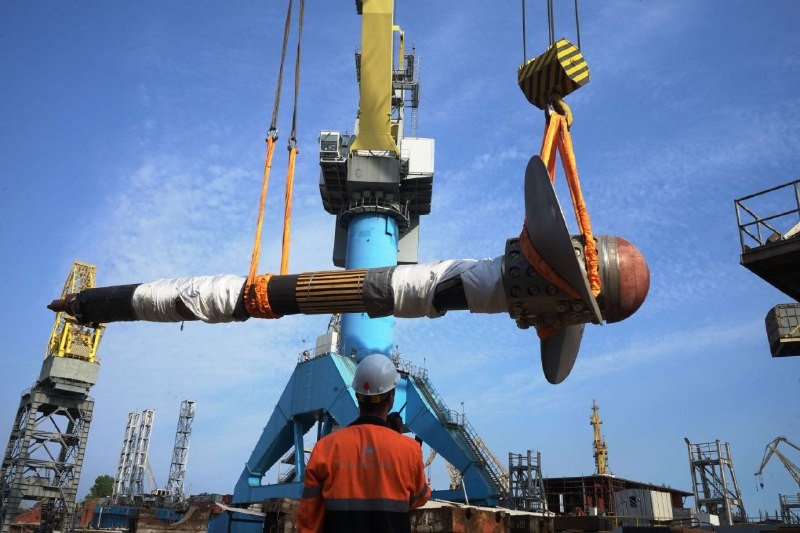 通用核破冰船楚科奇号的轴系安装工作已经开始。来自联合造船公司波罗的海造船厂的专家将连接破冰船螺旋桨的第一个螺旋桨轴到船尾。
