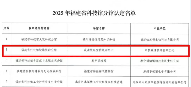 霞浦核电宣传展示中心获评福建省科技馆快堆核能分馆