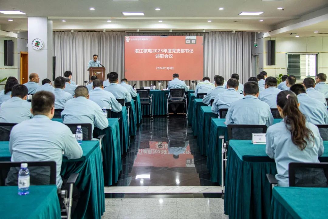 为深入学习贯彻习近平新时代中国特色社会主义思想和党的二十大精神,全面压实党组织书记抓基层党建工作“第一责任人”职责,检验基层党建工作实效,1月6日,湛江核电召开2023年度党支部书记述职会。湛江核电党委书记、董事长张震出席会议并讲话,纪委书记、工会主席常晓峰主持会议,公司领导张继强、李强、刘博、刘鑫参加会议,国家电投党建部有关同志视频参加指导。