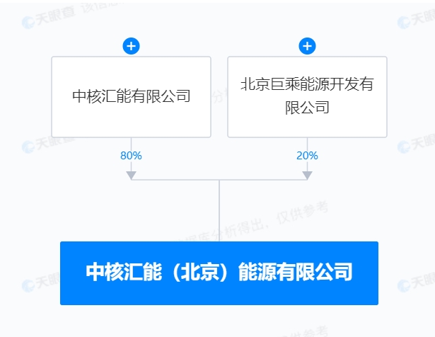 天眼查显示,近日,中核汇能(北京)能源有限公司成立,法定代表人为段继兵,注册资本1000万元,经营范围包含:太阳能发电技术服务;风力发电技术服务;储能技术服务;电动汽车充电基础设施运营等。企查查股权穿透显示,该公司由中国核电(601985)旗下中核汇能有限公司、北京巨乘能源开发有限公司共同持股。