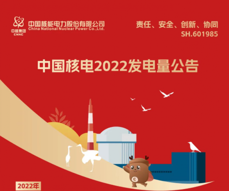 中国核电:2022年核电机组发电量为1852.39亿千瓦时