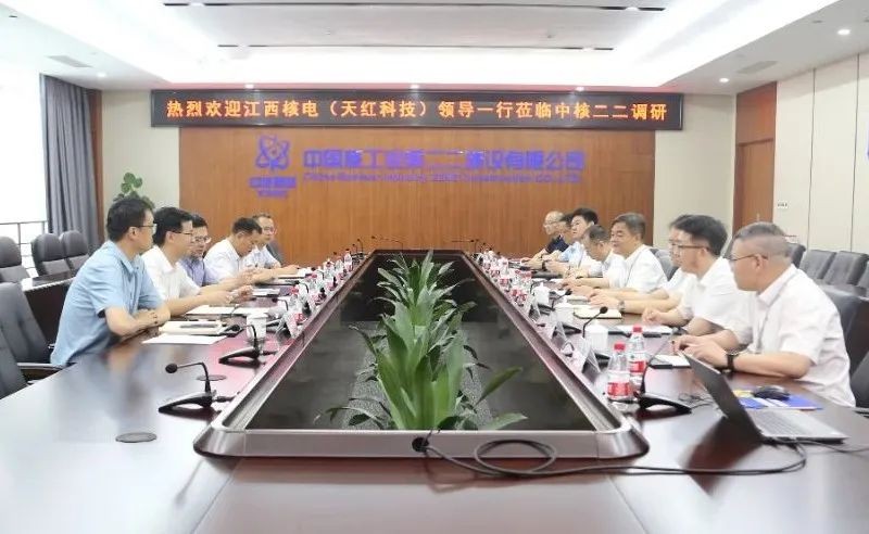 7月19日,江西核电有限公司(以下简称江西核电)党委书记、董事长、总经理冯雷一行到访中核二二,与公司党委书记、董事长郭云,总经理、党委副书记陈刚等围绕合作项目的管理模式、人员配置、进度管控等进行了深入交流。