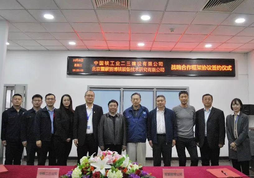 10月26日,中核二三与北京雷蒙赛博核装备技术研究有限公司(简称“雷蒙赛博”)在北京签订战略合作框架协议。这是双方自2015年来第三次签订战略合作框架协议,标志着双方战略合作的进一步深化延续。中核二三董事长、党委书记李启彬与雷蒙赛博董事长周文进行了深入的合作会谈和交流,并签署协议。中核二三总经理、党委副书记范凯参加签约仪式。