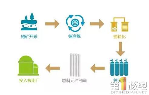 压水堆是目前国内外核电厂广泛使用的反应堆堆型。压水堆核电厂的核燃料使用铀-235含量为3%-5%的低浓铀。其获得核燃料的过程包括铀矿勘查、铀矿开采、铀冶炼、铀转化、铀浓缩和燃料元件制造。