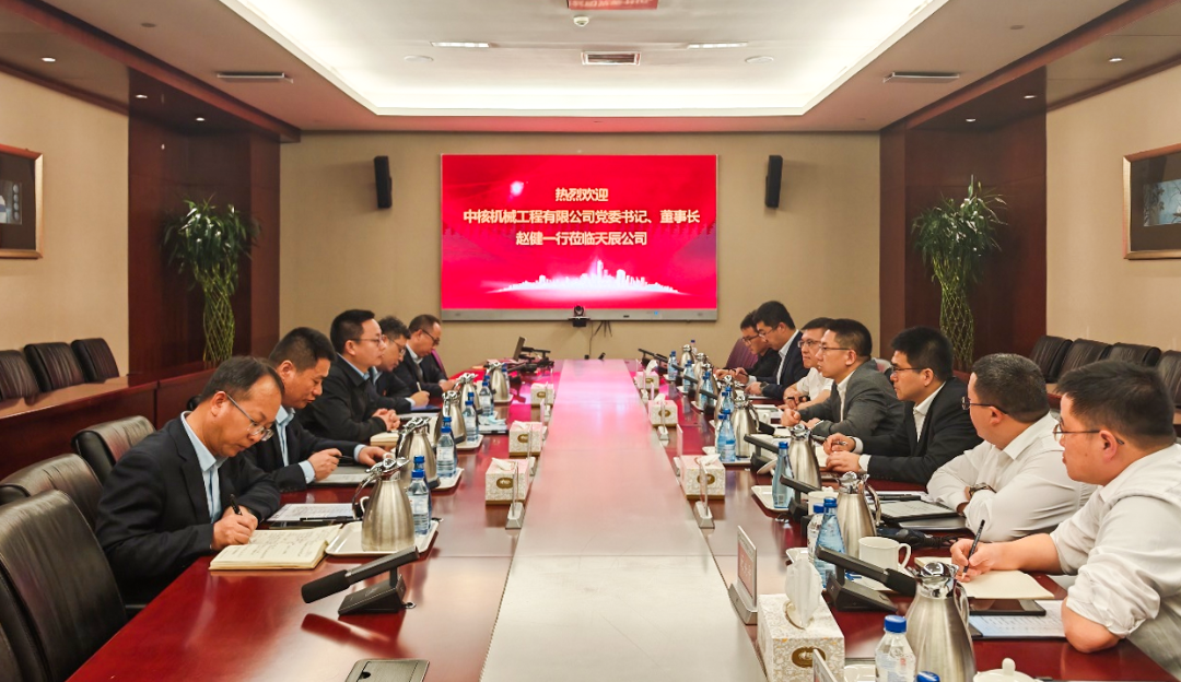 4月2日,中核机械工程党委书记、董事长赵健一行专程拜访中国天辰工程有限公司副总经理吉利,双方就如何发挥各自专业领域的优势,围绕大件吊装、模块化施工等内容进行深入交流。