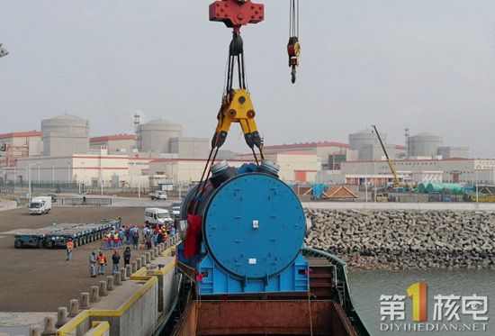 3月18日,红沿河核电5号机组首台核岛主设备——反应堆压力容器运抵红沿河核电现场,这标志着红沿河核电二期工程由此进入核岛主设备安装高峰。 反应堆压力容器运抵红沿河核电现场 5号机组反应堆压力容器运抵现