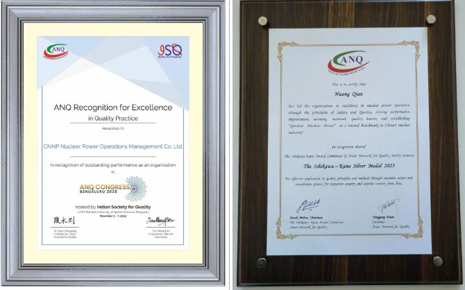 秦山核电荣获亚洲质量卓越奖和个人奖