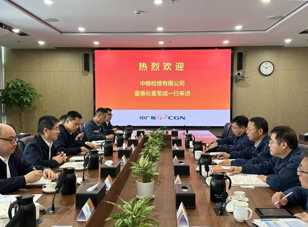 2月18日-19日,公司党委书记、董事长董军成一行到中广核惠州核电有限公司(以下简称“惠州核电”)拜访交流,惠州核电党委书记、董事长章国强,党委委员、副总经理舒亮,维修副总工程师王超等参加交流会议。