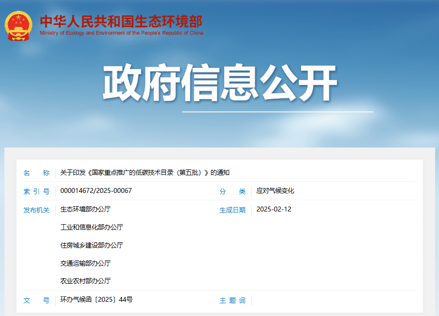 2月12日,生态环境部等五部门发布《国家重点推广的低碳技术目录(第五批)》,山东核电“压水堆核电厂热电联供技术”入选。