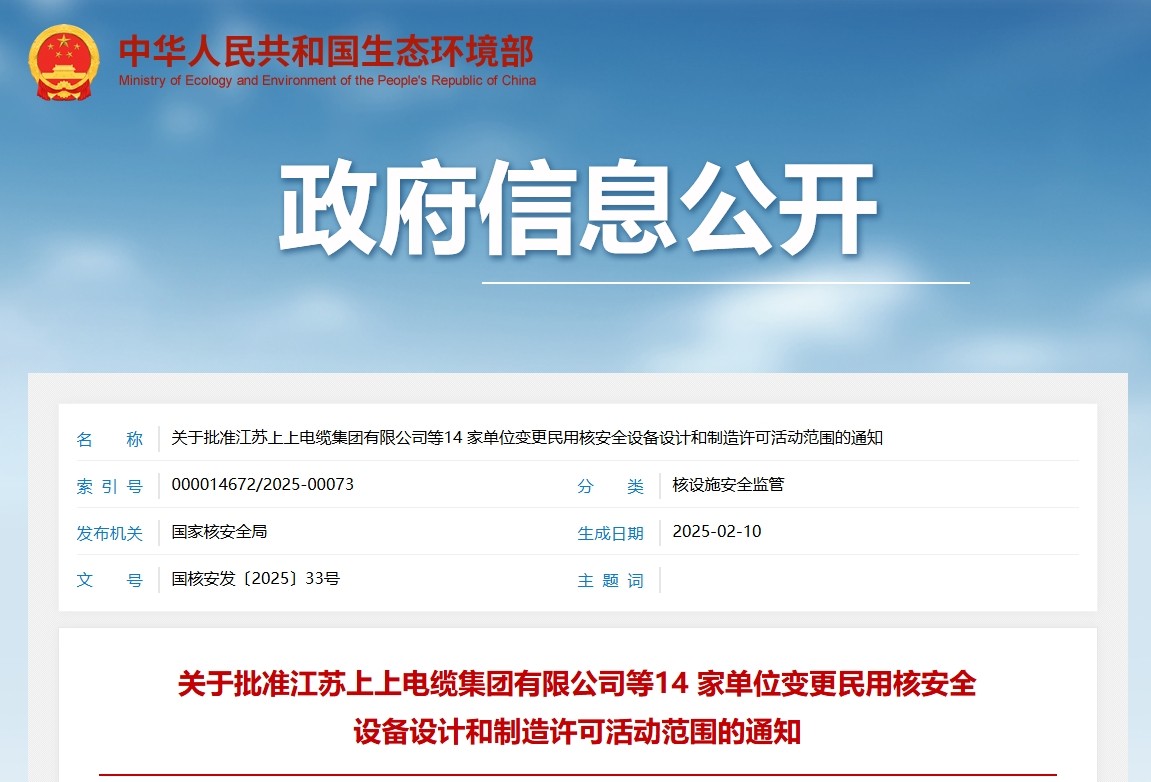 关于批准江苏上上电缆集团有限公司等14 家单位变更民用核安全设备设计和制造许可活动范围的通知