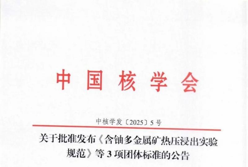 关于批准发布《含铀多金属矿热压浸出实验规范》等3项团体标准的公告