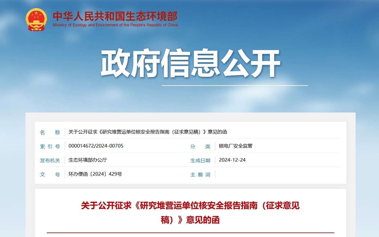 关于公开征求《研究堆营运单位核安全报告指南(征求意见稿)》意见的函