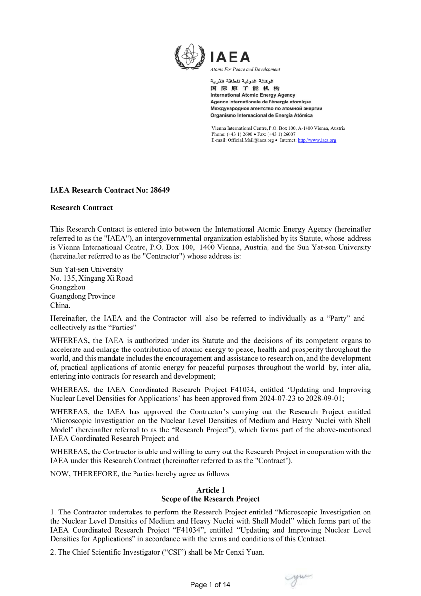 近日,学院核数据学科在国际核领域再次取得重要进展:以袁岑溪教授为首席科学家的科研团队成功获批国际原子能机构(IAEA)研究项目“基于壳模型的中重核区能级密度微观研究”(IAEA Research Contract No: 28649)。