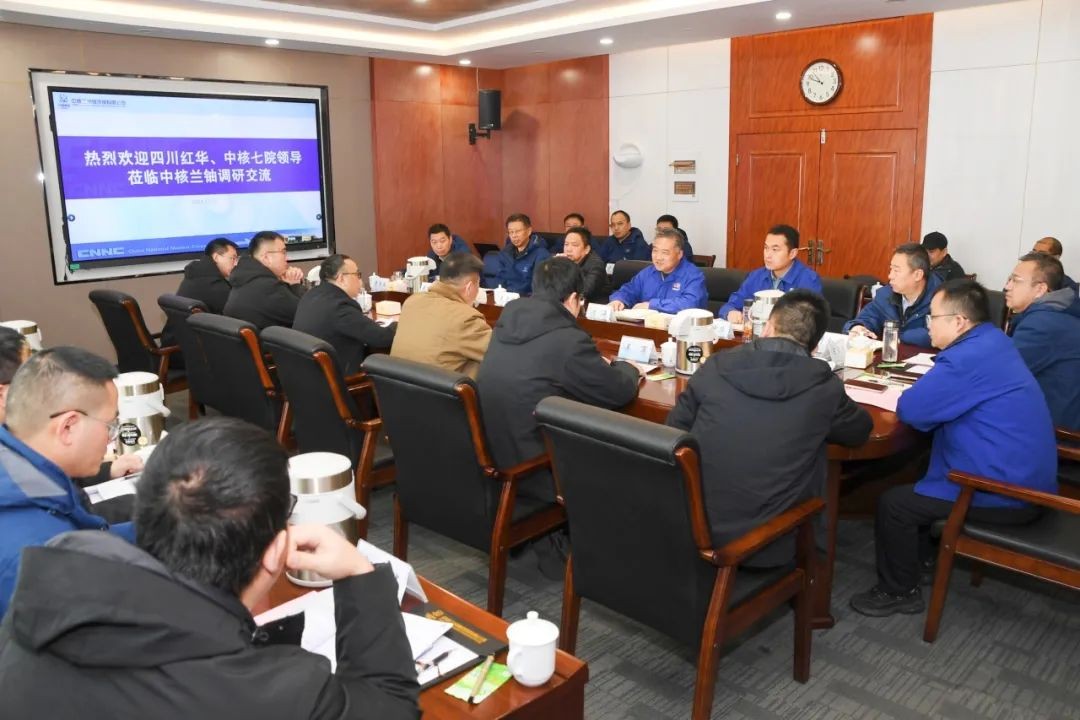 12月12日,四川红华实业有限公司总经理、党委副书记彭元明,总工程师郭飞;中核第七研究设计院有限公司中核集团科技带头人车军一行到中核兰铀调研,并就相关事宜进行座谈交流。